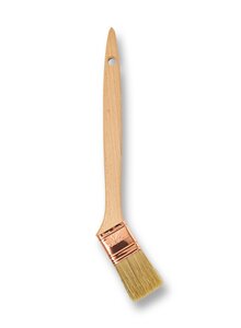 Spalterkwast geschikt voor zowel watergedragen als synthetische verven en vernissen, mengeling van wit Chinees varkenshaar en witte volle polyestervezel, gelakte houten steel.